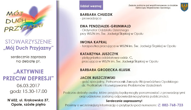 Na te i wiele innych pytań spróbują państwu opowiedzieć nasi specjaliści jak i osoby dotknięte bezpośrednio depresją.